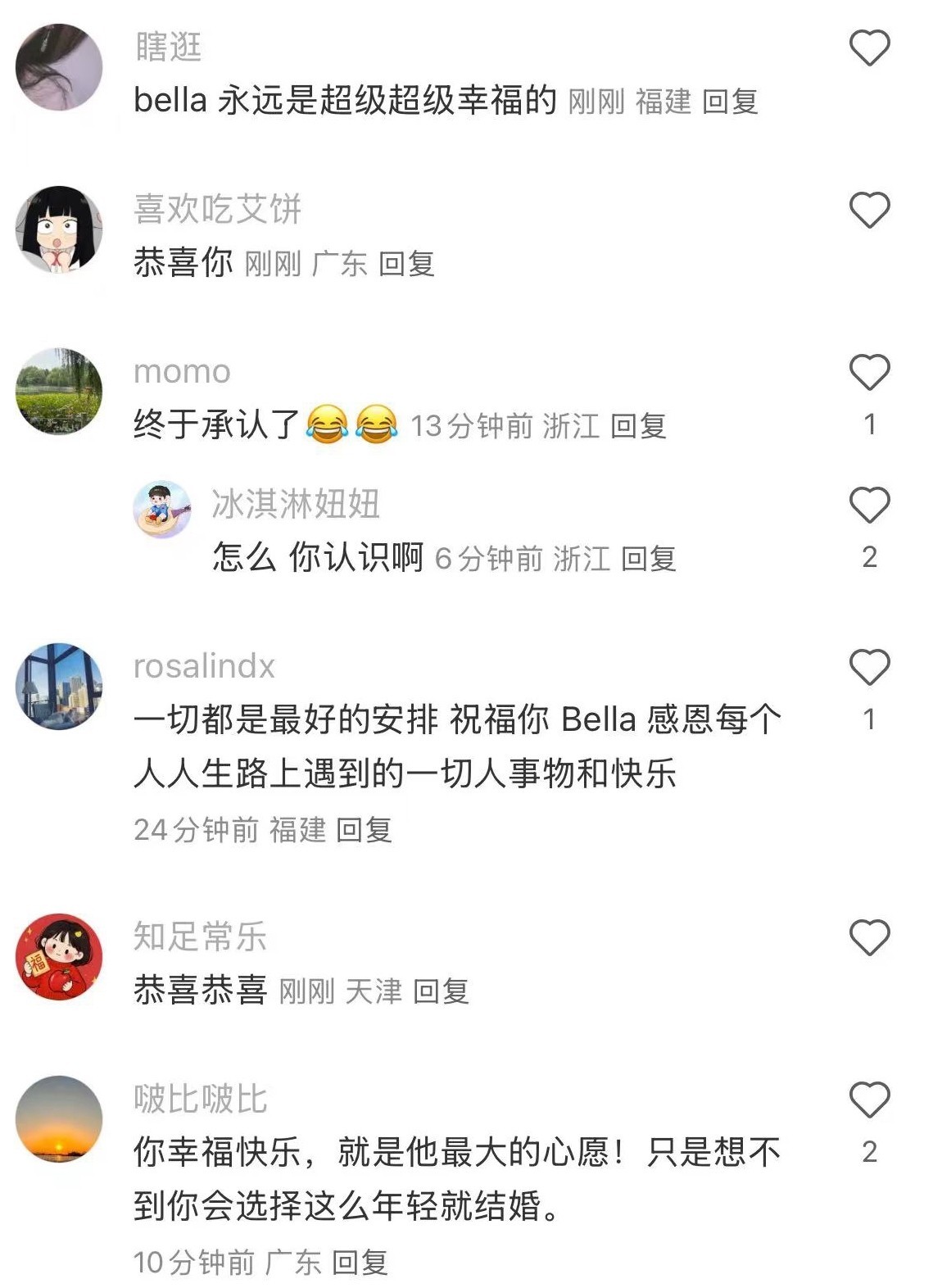3月18日,Bella毫无预警在外交网告示成婚,丈夫的状貌与年纪、姓名等信息都保握机密,莫得公开。
