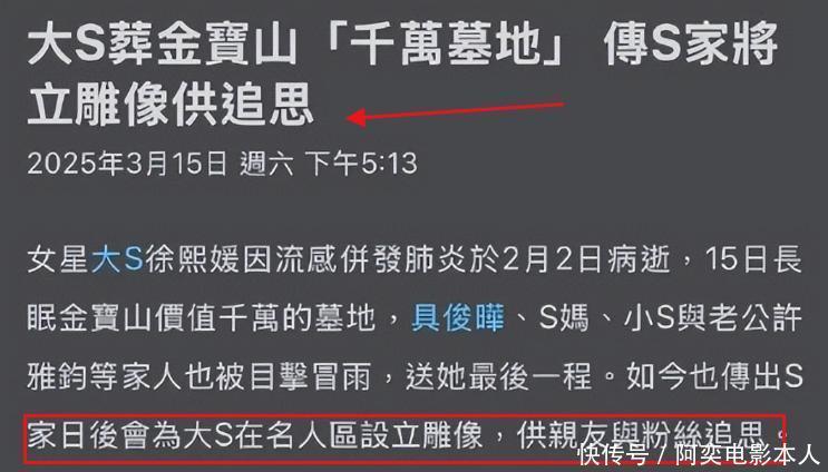 天然了,不论怎样样大S到底暂时得以安息了。如今就剩下在金宝山立雕像一事,已便捷粉丝们前来诟谇。