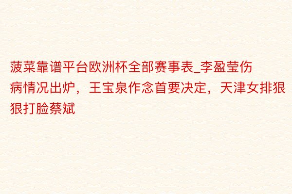菠菜靠谱平台欧洲杯全部赛事表_李盈莹伤病情况出炉,王宝泉作念首要决定,天津女排狠狠打脸蔡斌