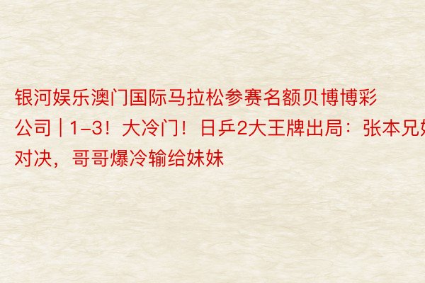 银河娱乐澳门国际马拉松参赛名额贝博博彩公司 | 1-3!大冷门!日乒2大王牌出局:张本兄妹对决,哥哥爆冷输给妹妹