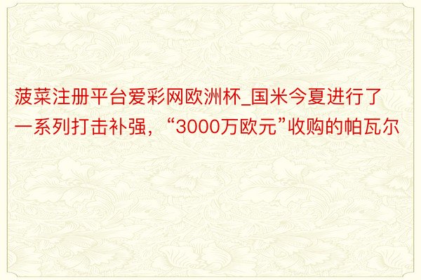 菠菜注册平台爱彩网欧洲杯_国米今夏进行了一系列打击补强,“3000万欧元”收购的帕瓦尔